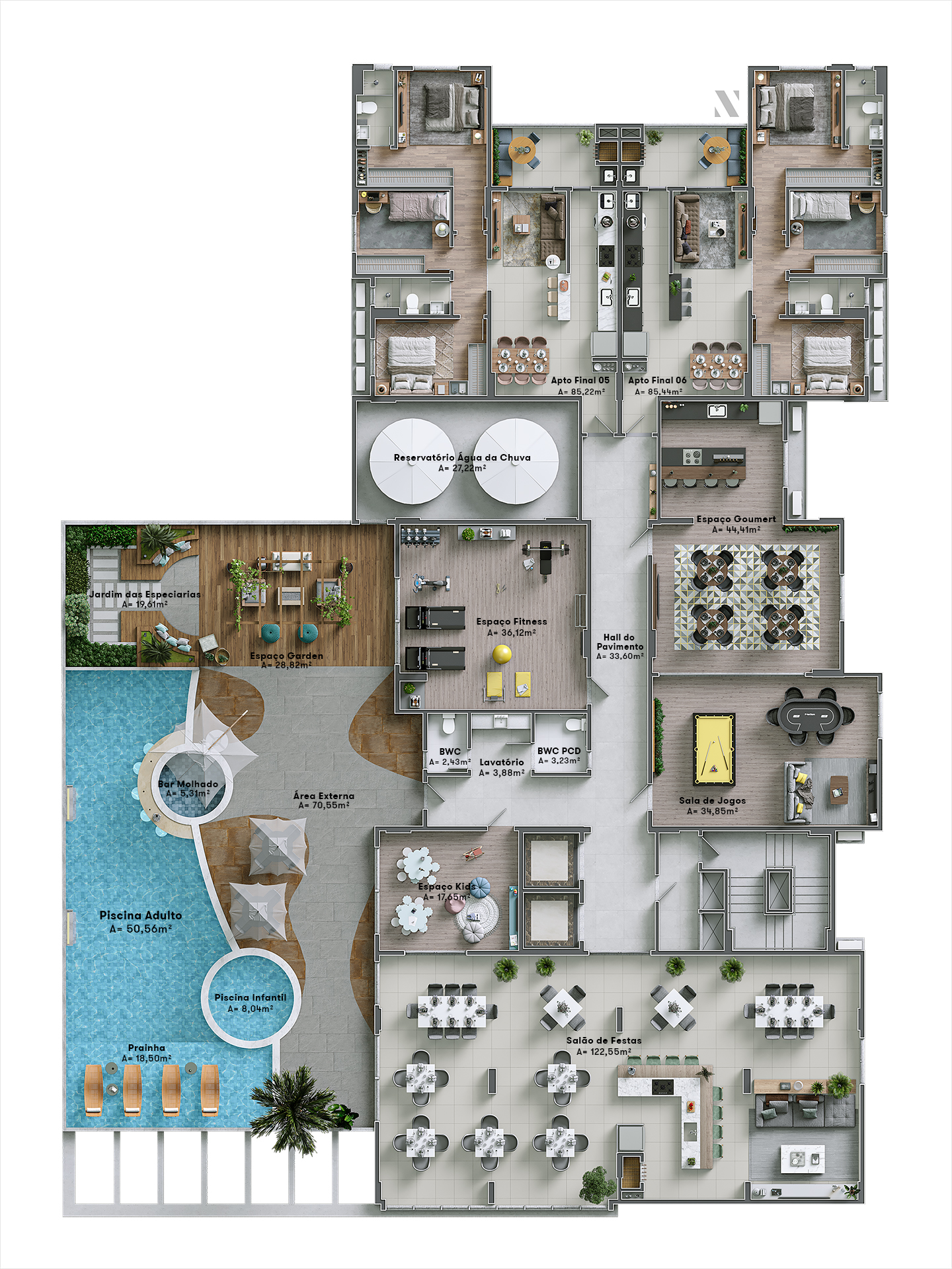 Apartamentos 3 dorm. sendo uma suíte (85,44 e 87,18 metros privativos)
